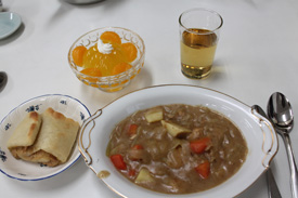 | 2種類のピザとクリームシチュー | ツナとマヨネーズを巻いたパンとシチュー |