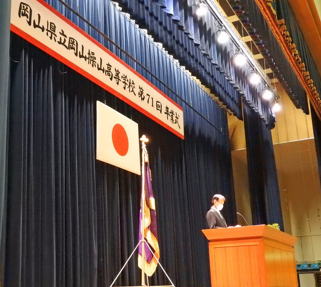 卒業生のみなさん,保護者の皆様,本日は本当におめでとうございます。そして地域や関係者の皆様,卒業生が在校中は温かいご指導,ご協力をいただきまして本当にありがとうございました。