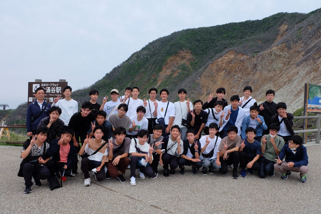最終日は箱根観光です。3日間,体を動かしっぱなしの行程だったにもかかわらず,みんなまだまだ元気いっぱいでした。滞在時間が非常に短く,ゆっくりとはできませんでしたが,火山ガスが上る独特の山肌や,遠く富士山を背景に集合写真を撮ることもできました。