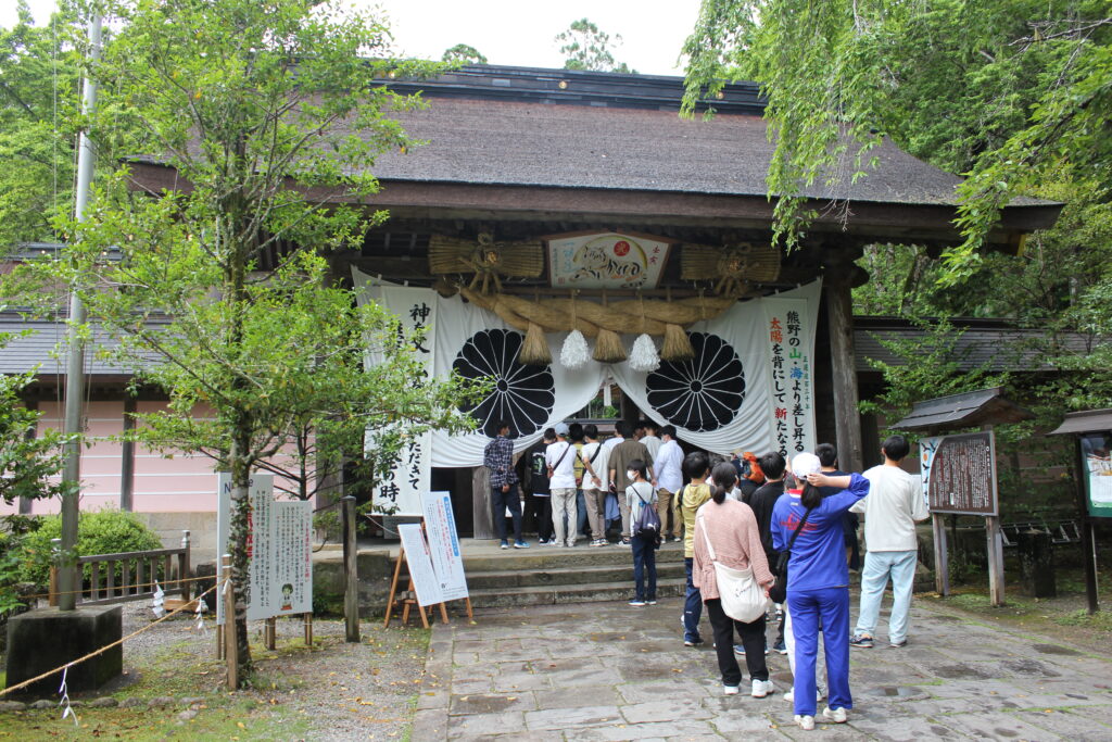 〇紀州梅干し館:梅干しづくり体験。色々な味から自分の好みの梅干しを製作しました。 〇2日目午後は熊野古道ウォーク。現地ガイド(語り部)の方の説明を聞きながら,三軒茶屋跡から熊野本宮大社まで,約90分歩きました。八咫烏(やだがらす)は勝利へ導く神で,日本サッカー協会のシンボルマークにもなっている。