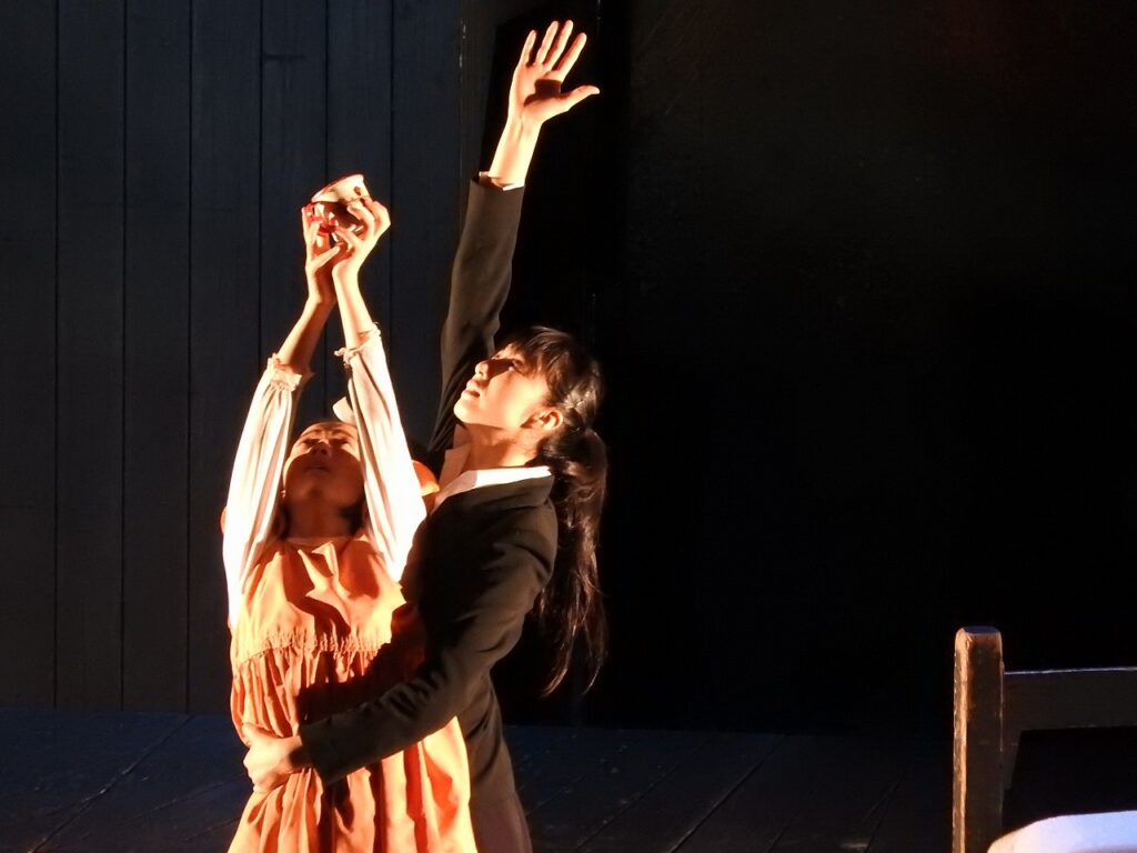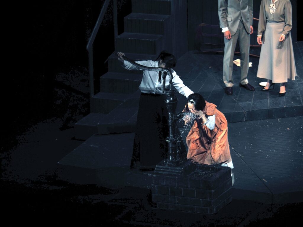 この劇が描くのは、三重苦の少女ヘレンと、彼女の家庭教師となったアニー・サリバンとの間の、壮絶な「戦い」だ。ヘレンの行動はすべてが衝動的で、「野生」そのもの。ケラー家の誰もが諦め、愛情という名の鎖でヘレンを動物のように扱っているように見えた。そこに現れたのが、サリバン先生である。彼女自身、過去に視覚障害を抱えていたという背景が、ヘレンを救う「意地」となって舞台上に溢れ出す。何度も繰り返された二人の肉弾戦のようなぶつかり合いは、ヘレンの内にある「人間性」を引きずり出そうとする、魂と魂の激しい衝突だった。