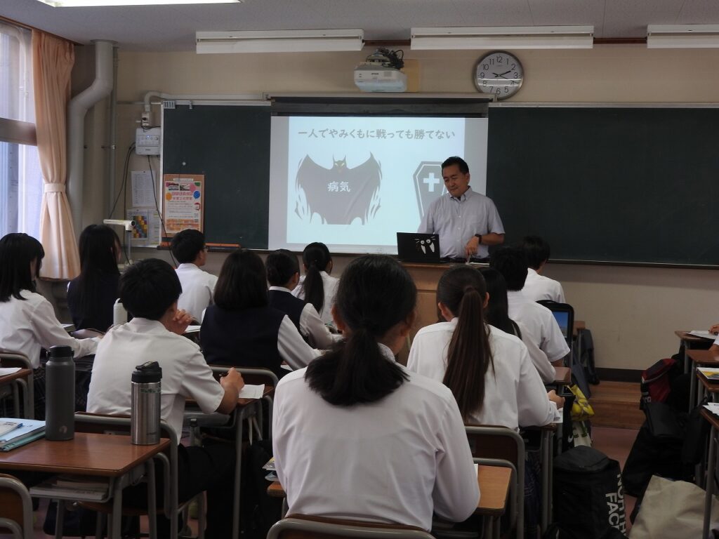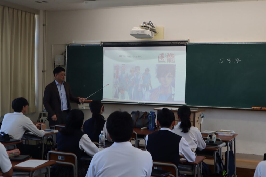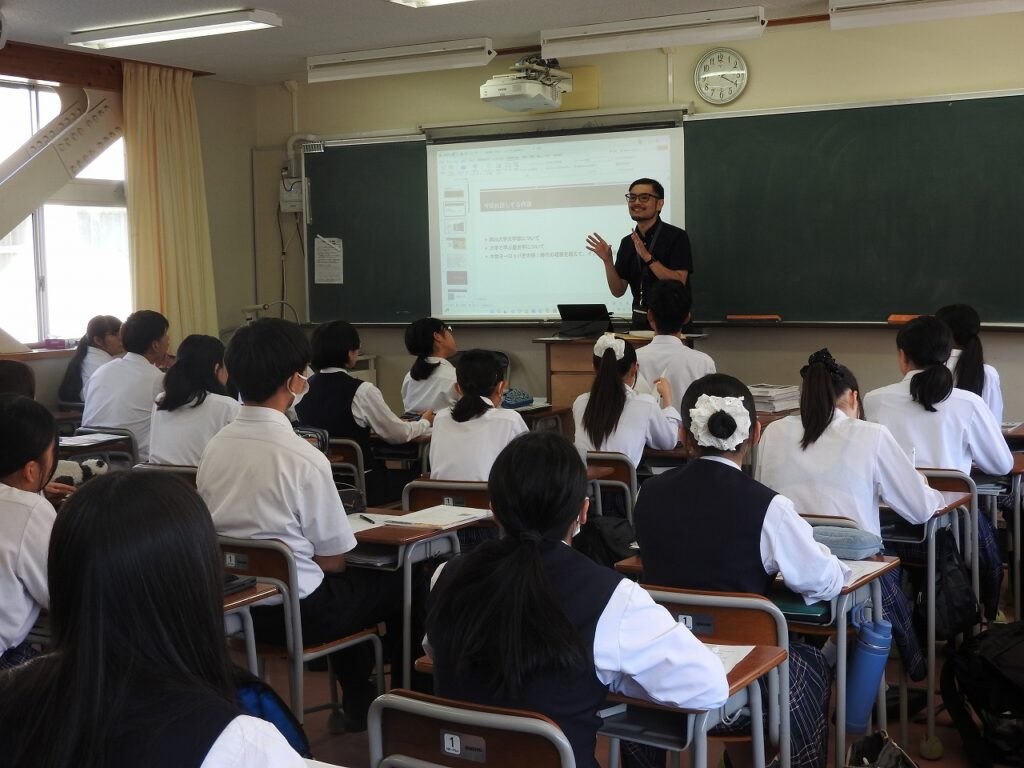 10/6(月)の6・7時間目,未来航路(総合的な探究の時間)の時間の一環として,岡山大学学部別講演会が開催されました。