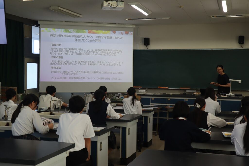 大学で研究されている内容を中心とした講演会でしたが,生徒たちは熱心に耳を傾けていました。