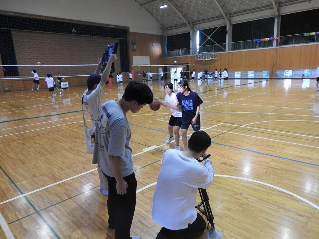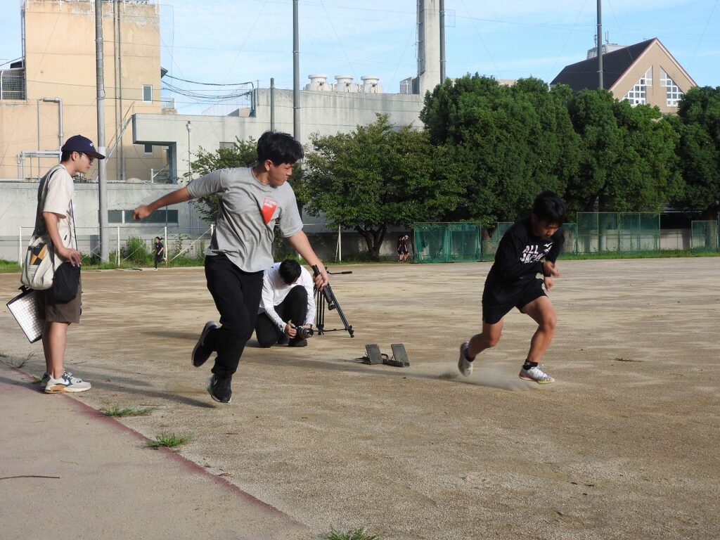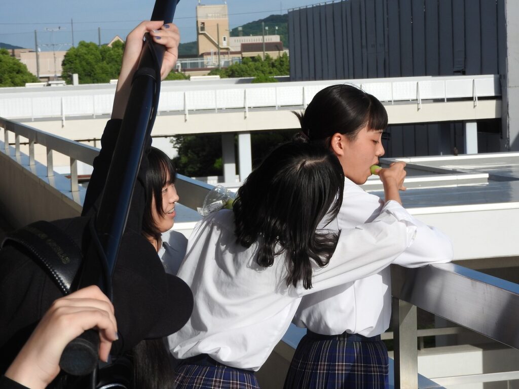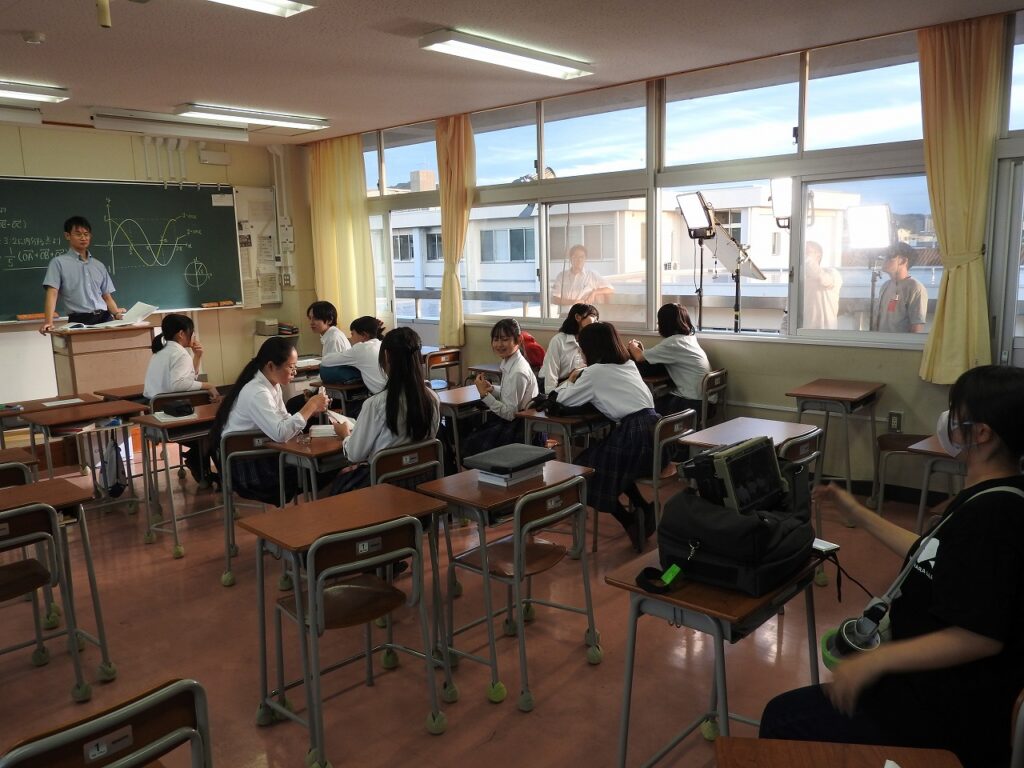 名古屋市立大学芸術工学部映像研究室の依頼により、教室、グラウンド、体育館を撮影場所にして、生徒が出演するビデオ撮影が行われました。制作する作品は2つです。1つはヤングケアラーへの理解を進める啓発動画、もう1つは2026年に名古屋市を中心に開かれる第20回アジア競技大会のPR動画です。名古屋市と協働した映像の制作です。この研究室に操山高校卒業の大学生が在学しているご縁で、今回依頼をいただきました。