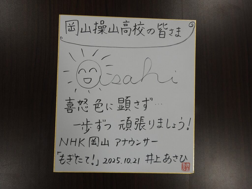 NHK学園・・・・岡山操山高校には通信制課程がありますが、それとは別に、NHK学園高等学校協力校という看板もあります。NHK学園は1962年にNHKによって設立された広域通信制普通科高校で、テレビやラジオのNHK高校講座の視聴と、協力校へのスクーリング、オンライン学習などを組み合わせて単位修得を目指す高校です。そのご縁から今回の講演が実現しました。