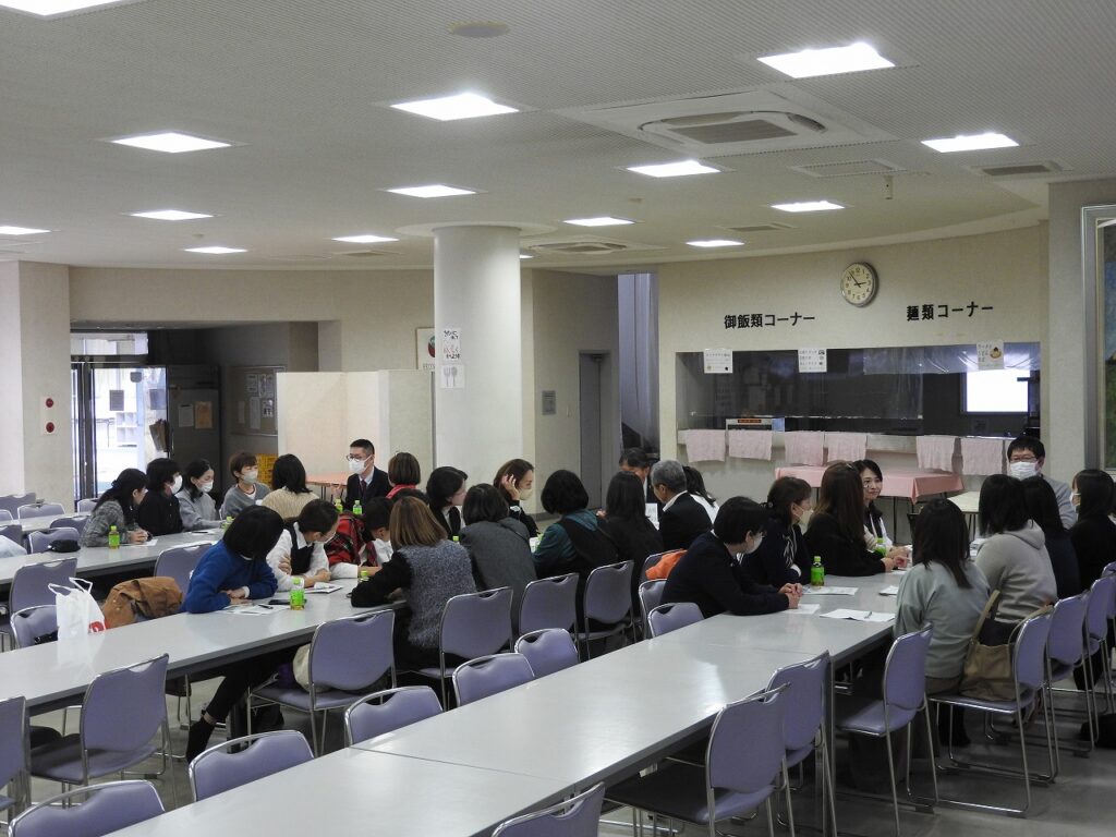 講話では、事前にリクエストのあった質問に答えながら、自らも親の立場にある者として、肩の力を抜いたお話を出席者にしました。交流会では学年主任が加わり、学校のこと、子どものこと、家庭のことなど、笑い声が漏れる中でお互いの交流を深めました。出席者には各学年主任オススメのお茶菓子も用意され、楽しい意見交換のひとときとなりました。