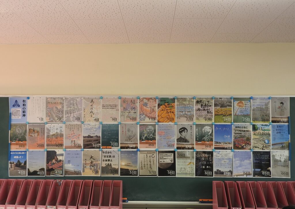このカレンダーは生徒会執行部が企画・製作し、背景画には写真部が撮影した写真が使われました。メッセージの言葉は、3年団教員、校長先生、ほか多くの教員から寄せられました。