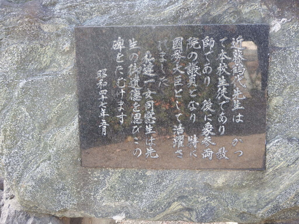 高市氏が女性初の内閣総理大臣となった、その80年前、1946年4月、戦後初の衆議院選挙で当選した39人の女性代議士の中に、近藤鶴代氏がいました。操山高校の前身である、第一岡山高等女学校出身で、後に国務大臣を務めた人です。石碑にある座右の銘「和して流れず」のとおり、壁に挑戦したからこそ越えられることができる、一人の成功は希望になる、というお話でした。