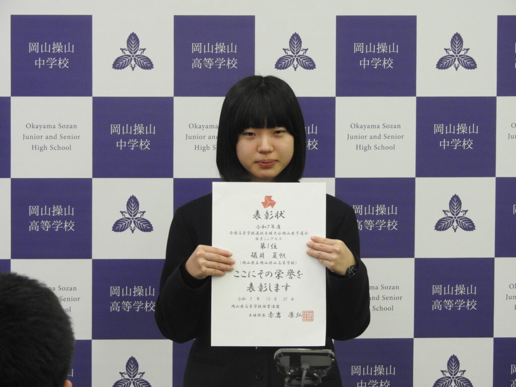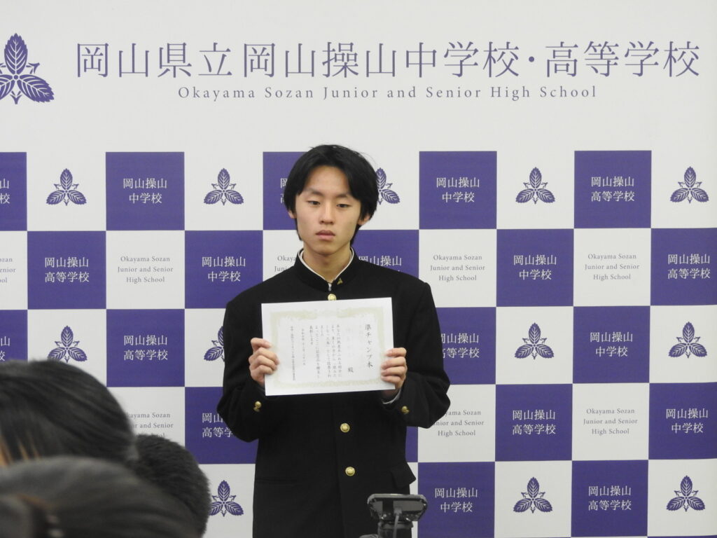 式後は受賞披露です。短い冬休みにも活躍がありました。先輩から後輩へと続く、壁を越える操山生の挑戦は、これからも続きます。
