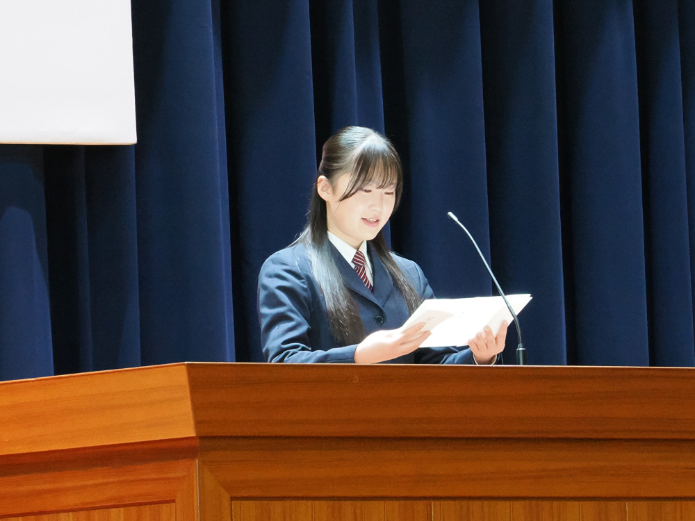 当日は快晴で暖かな一日となり、太陽の光が差し込む中、保護者・教職員・在校生が見守る中で、清冽な空気に包まれた厳かな式となりました。