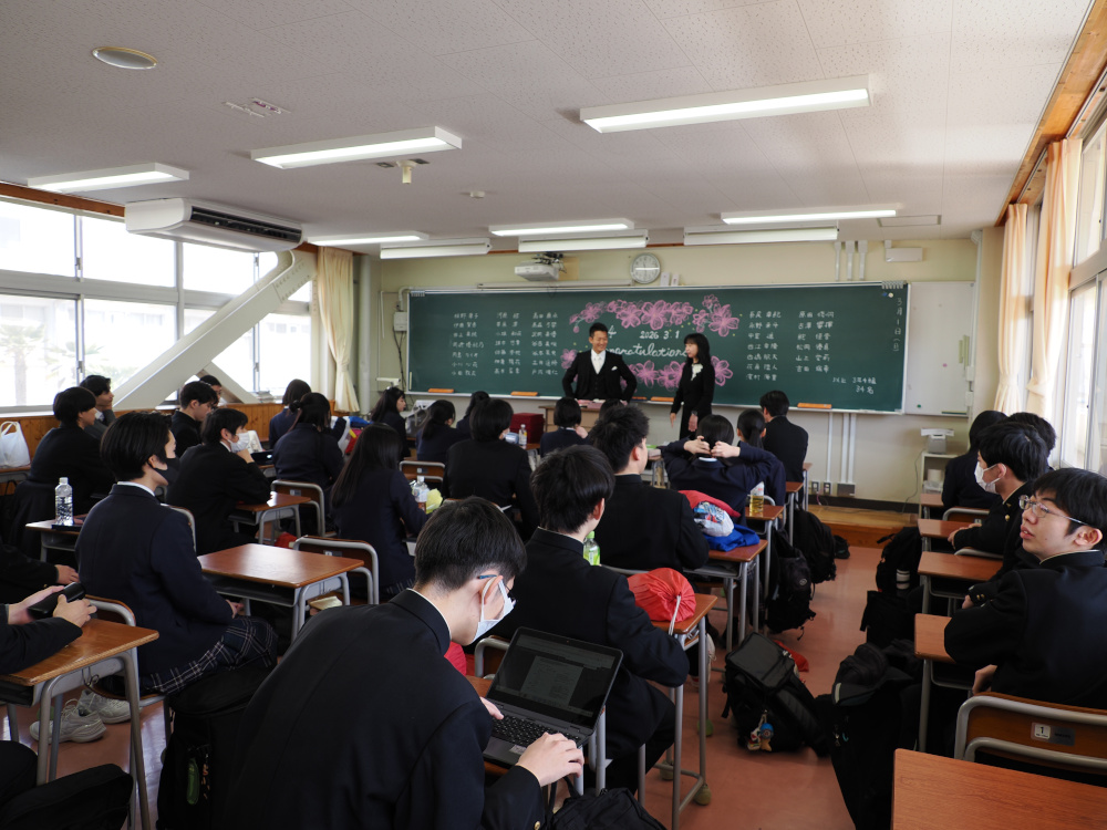 式後は各ホームルームに戻り、担任と生徒による最後のLHRを行いました。それぞれの教室で思い出を振り返りながら、別れを惜しむ姿が見られました。