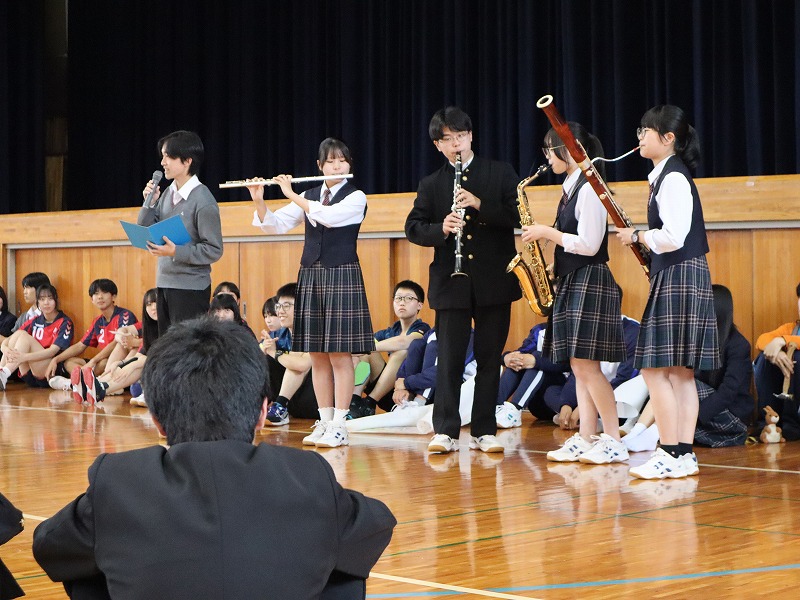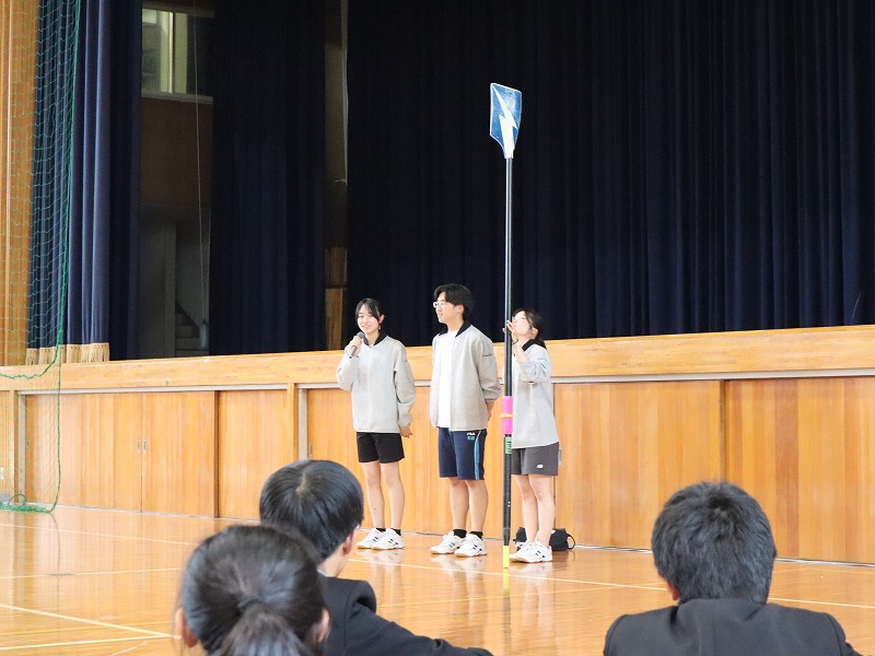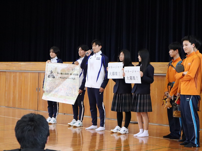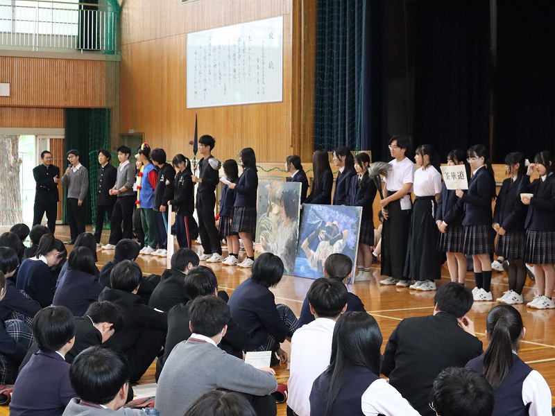 ようこそ操山高校へ! 2026年04月14日 4月13日(月)新入生歓迎会が行われました。先輩方によるユーモアあふれる部紹介に、新入生は興味津々です。放課後には吹奏楽部の中庭コンサートに書道パフォーマンス、演劇部の公演などの様々なイベントがありました。20日(月)までは部活動体験もあります。いったい何部に入るのでしょうか。 «陸上競技×水上競技:前の記事 過去のニュース一覧