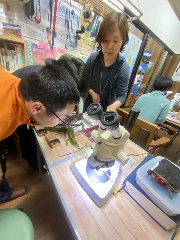 寿庵さんには、日本変形菌研究会の高橋和成先生をはじめとした変形菌を愛する方々が同宿されており、部員たちは顕微鏡で変形菌を観察したり、お話を聞いたりと、良い出会いがありました。