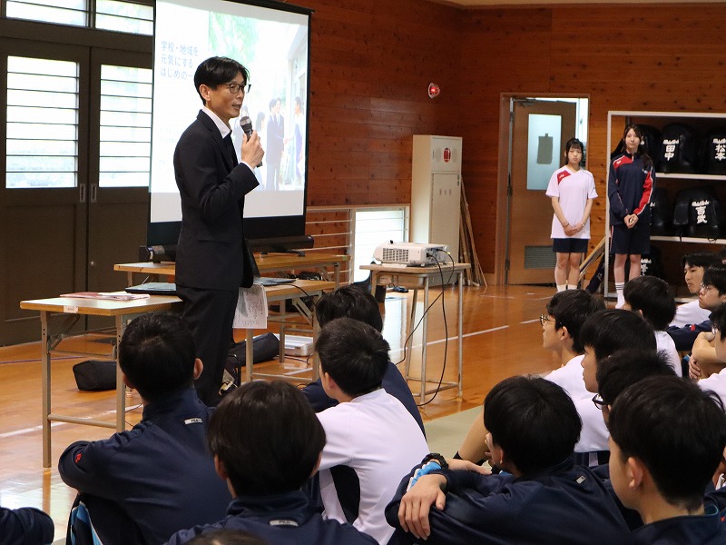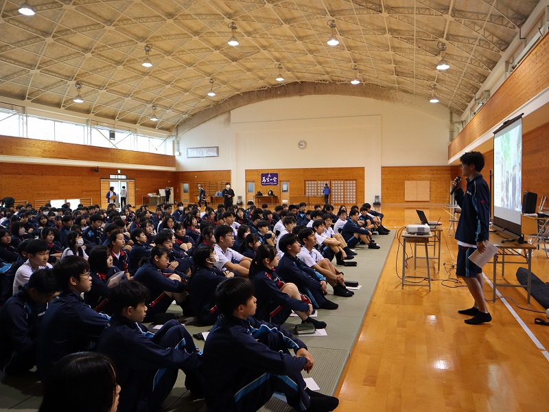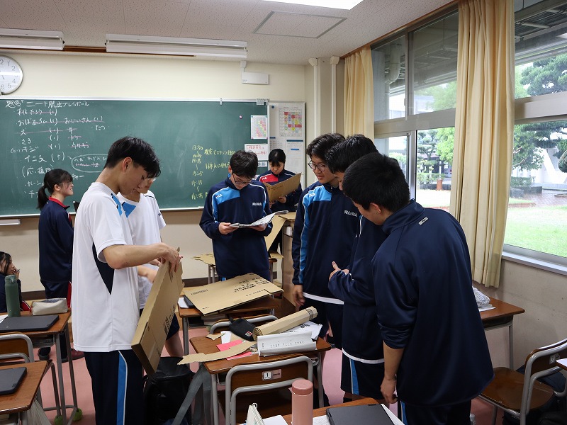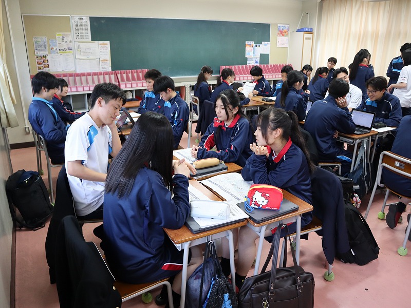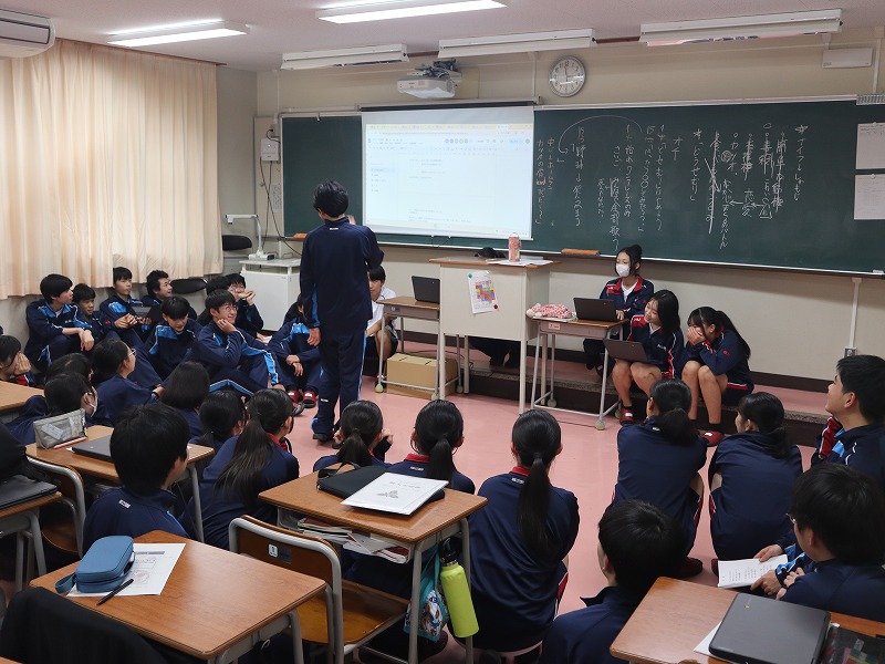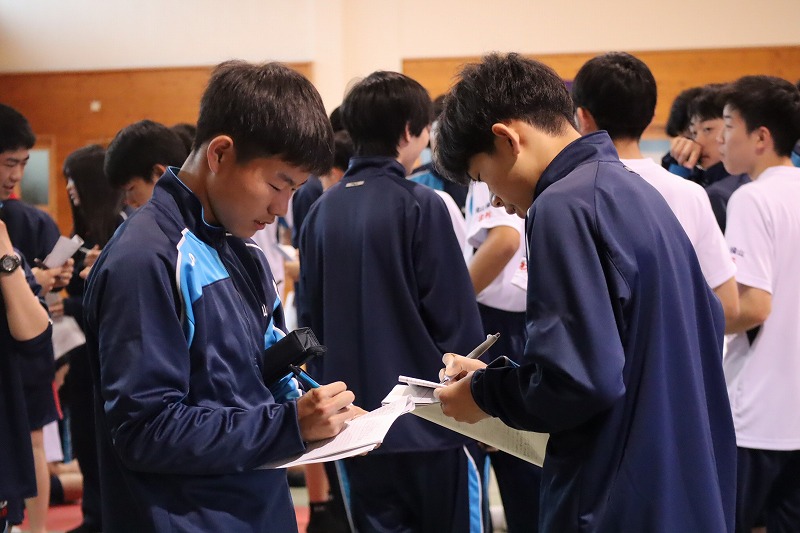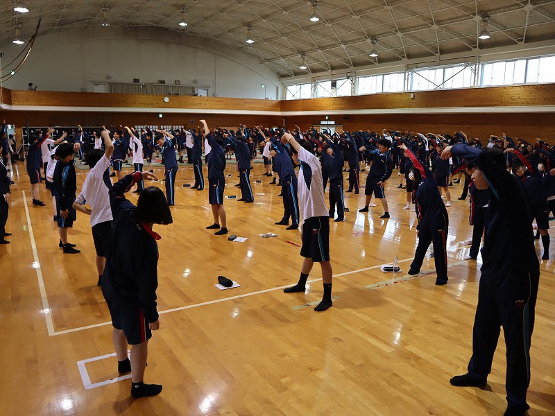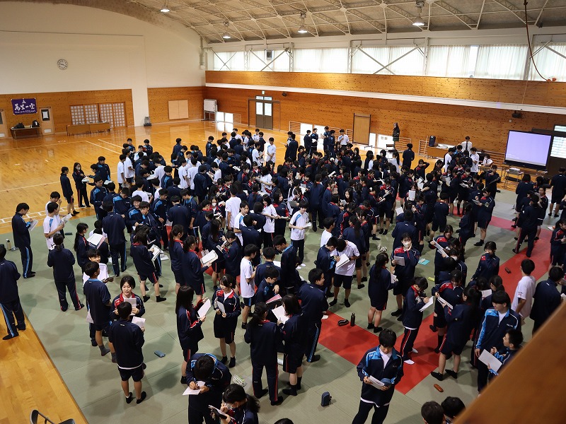 4月15日(水) 3日間にわたる新入生研修がスタートしました。初めの2日間は校内で、最終日は校外での研修となります。武道場にて朝のつどい。全員でラジオ体操第1をしたり、学年主任からの挑戦状と題してレクリエーションをしたりしました。教室に戻ると、次は自分の「学びのミライ地図」を考えます。個人で考えた後にグループで共有しました。午後からは各クラスでスタンツの準備です。準備時間が例年よりも短い中、工夫して取り組んでいました。