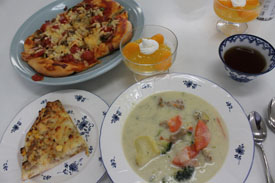 | パンとシチュー | ピザとクリームスープ |