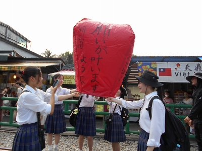 午後からは十份での天燈上げと九份での散策。願いを込めた天燈は空高く舞い上がりました。(願い事叶いますように。)