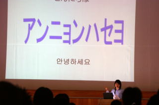 韓国と日本の文化の違いや、生徒代表との模擬会話など、