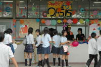 生徒・先生・保護者の代表が話し合いました。1年生は各クラスで体験型アトラクションを開催しました。 各文化部や委員会の展示・発表 模擬店も大賑わい 中庭では有志のパフォーマンスや腕相撲大会、箏曲同好会の演奏 文化祭の最後を飾るのは吹奏楽部と先生方のパフォーマンス